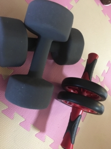 1位、筋トレ(ダンベル、腹筋ローラー)