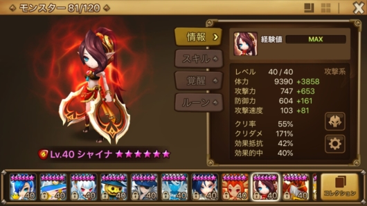 おいらにとってシャイナは色々なコンテンツで使います。ドラゴン・死ダン・ギルバト・占領戦…特にドラゴン・死ダンと占領戦では主力なのでその3つで活躍できるようなステータスにしたいです。