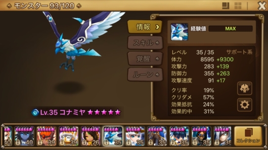 スキル1で攻撃デバフ、スキル2で回復阻害(タルタロスには関係ないですが)、スキル3で味方全体回復&攻撃バフというTHEサポーター枠のモンスターです。