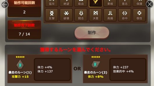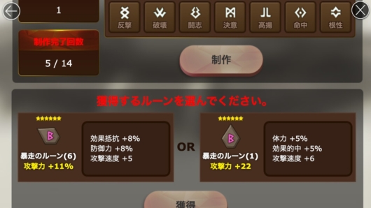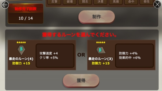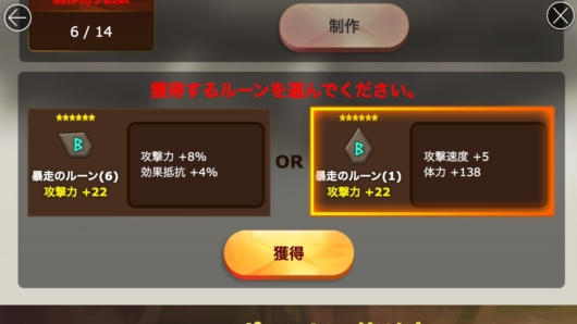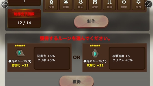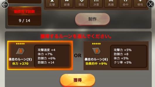 ルーン制作イベントの進行状況はいかがでしょうか。おいらは先日14個のルーンを制作し、イベント終了しました。ちなみに確定でもらえるヒーローのジェム&錬磨石はどちらも速度を選択しました。体力%も迷うところではありましたが。