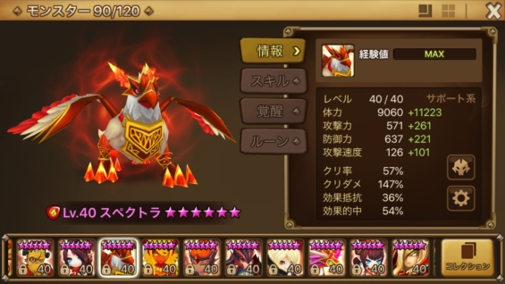 星6まで育成しようかと常々思っていますが、被ダメを受ける機会がほぼなく、最低限の速度と的中があれば仕事してくれるのでずっと後回しになっているという可哀そうな1体。できることが多くて、好きなモンスターでもあるんですが、いかんせんタワー、ヒロダン専用機になっています。覚醒すると見た目があまりにもダサいので変幻させています。それくらい思い入れがあるモンスターでもあります。
