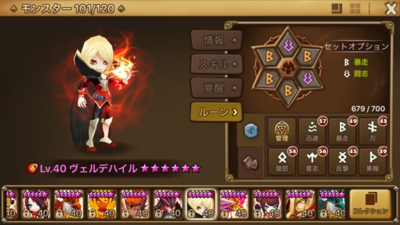 ヴェルデハイルを持っていない方は調合してでも手に入れてください。スキルマも必要ないので。暴走+闘志で組んでいますが、初心者の方はオール刃でも構わないので、とにかくクリ率を100%にしてください。4番ルーンにクリ率つければなんとかなるはず。
