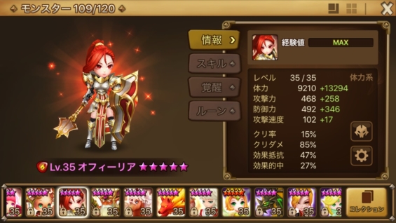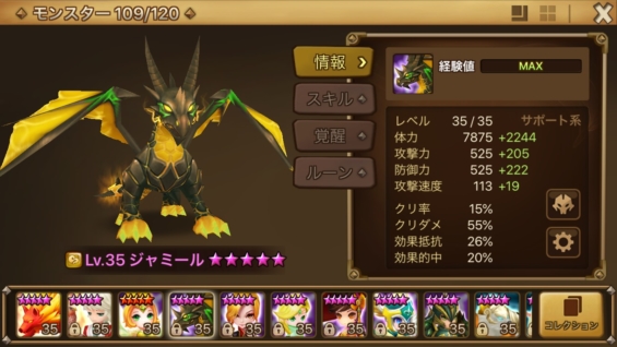 めでたくスキル2が全体攻撃となりました!絶望ルーンをつける恩恵が増えました。速度リーダーも相まってタワーの適性が高くなりましたね。全体攻撃デバフも、アルタミエル階やリリス階で効果的ですね。